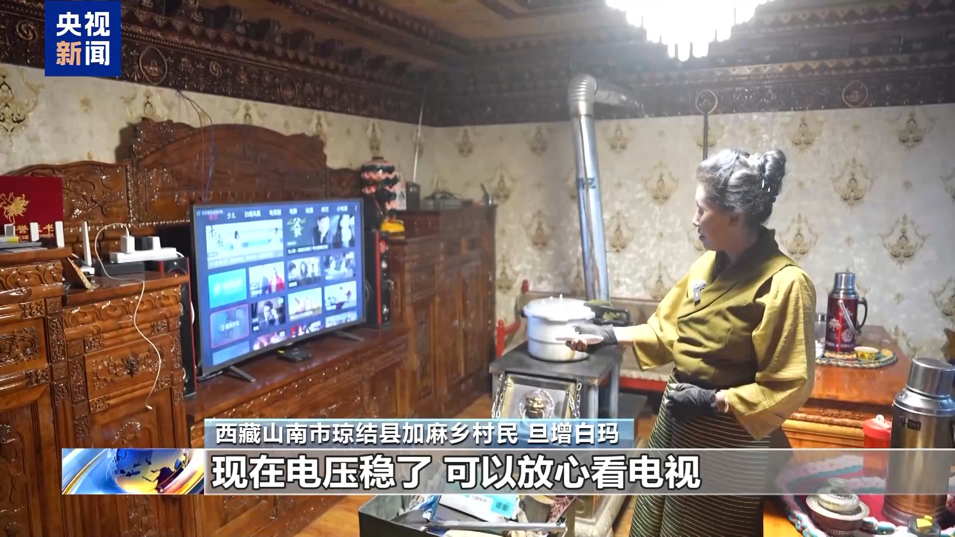 西藏山南瓊結(jié)縣加麻鄉(xiāng)村民 旦增白瑪:現(xiàn)在電壓穩(wěn)了,可以放心看電視。而且還買(mǎi)了很多新家電,冰箱、洗衣機(jī)。