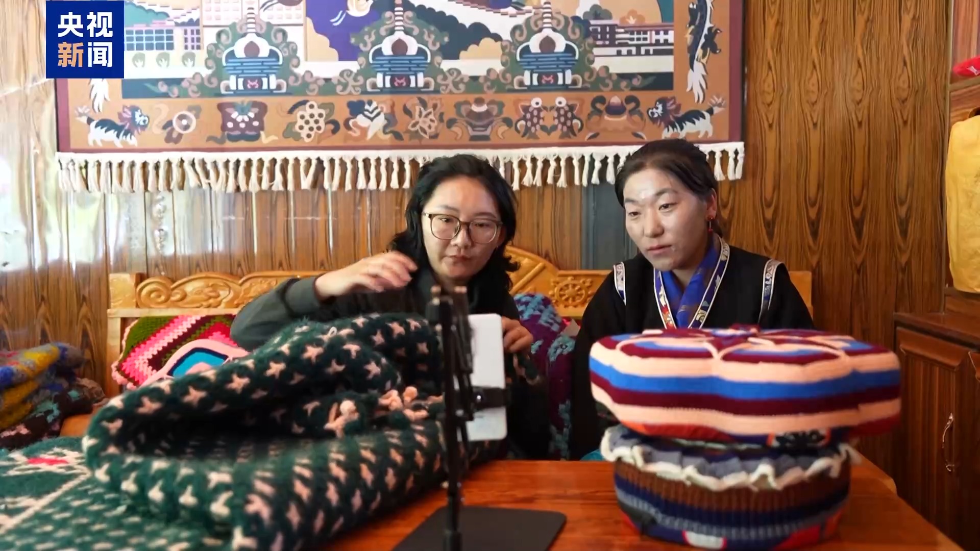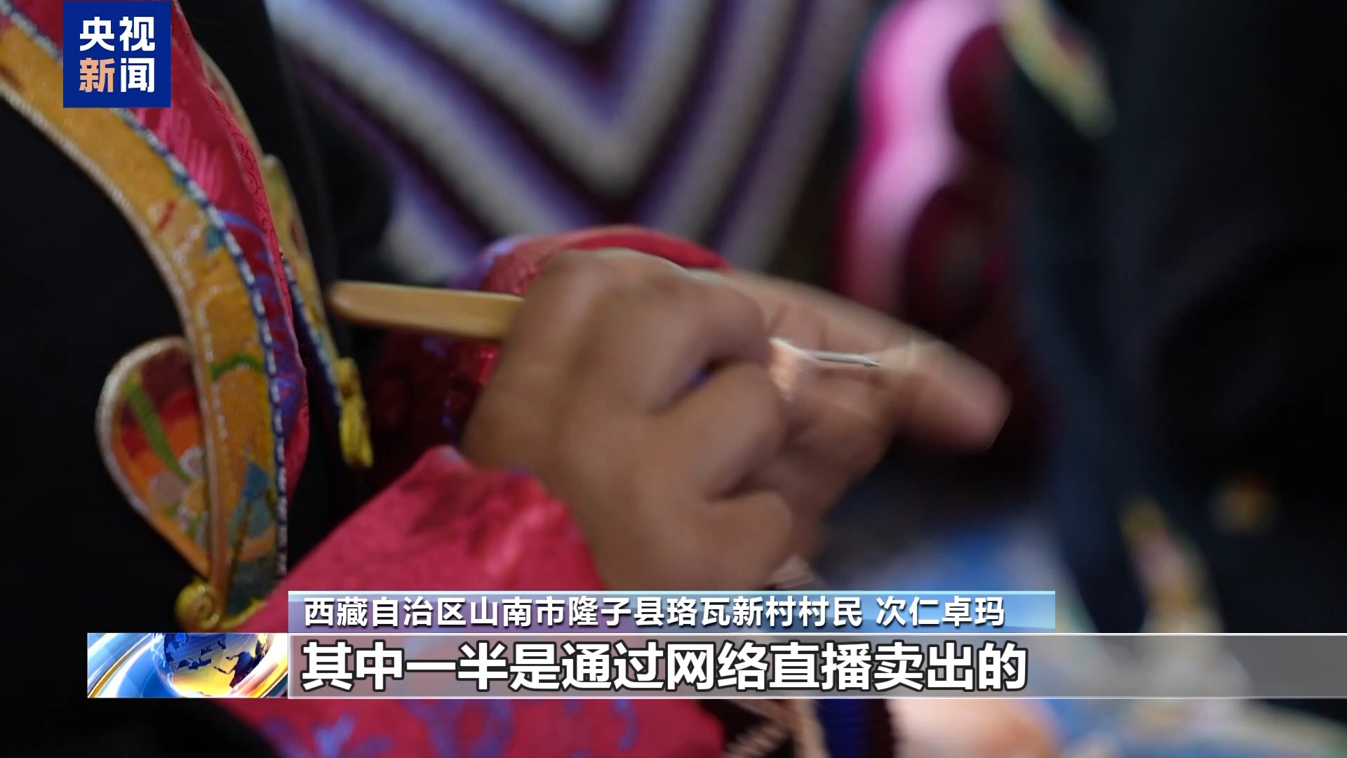 西藏自治區(qū)山南市隆子縣珞瓦新村村民 次仁卓瑪:今年以來(lái),我們已經(jīng)賣(mài)出了50多條毛毯,100多個(gè)靠枕,其中一半是通過(guò)網(wǎng)絡(luò)直播賣(mài)出的。