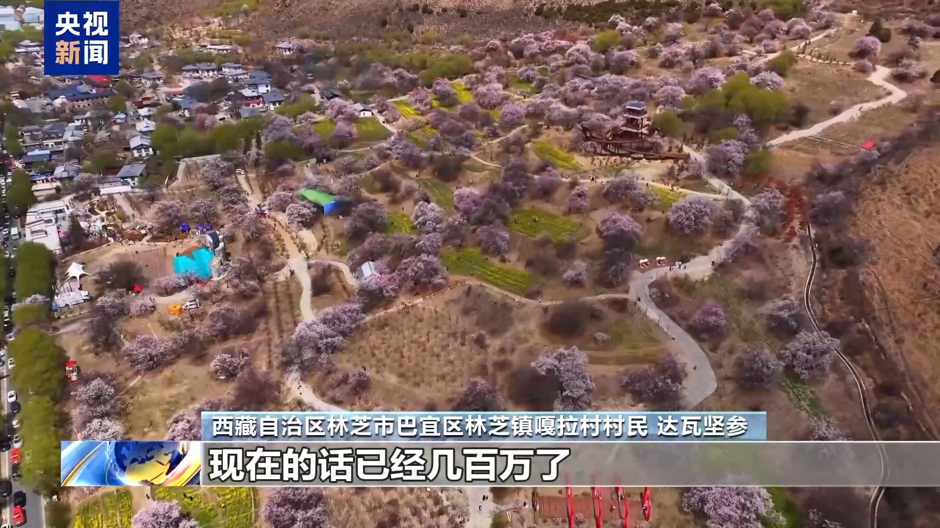 西藏自治區(qū)林芝市巴宜區(qū)林芝鎮(zhèn)嘎拉村村民 達(dá)瓦堅(jiān)參:以前從桃花節(jié)開(kāi)始搞起來(lái)的時(shí)候,全村收入幾百塊錢(qián)到幾千塊錢(qián)到幾萬(wàn)塊錢(qián),現(xiàn)在的話已經(jīng)幾百萬(wàn)了。