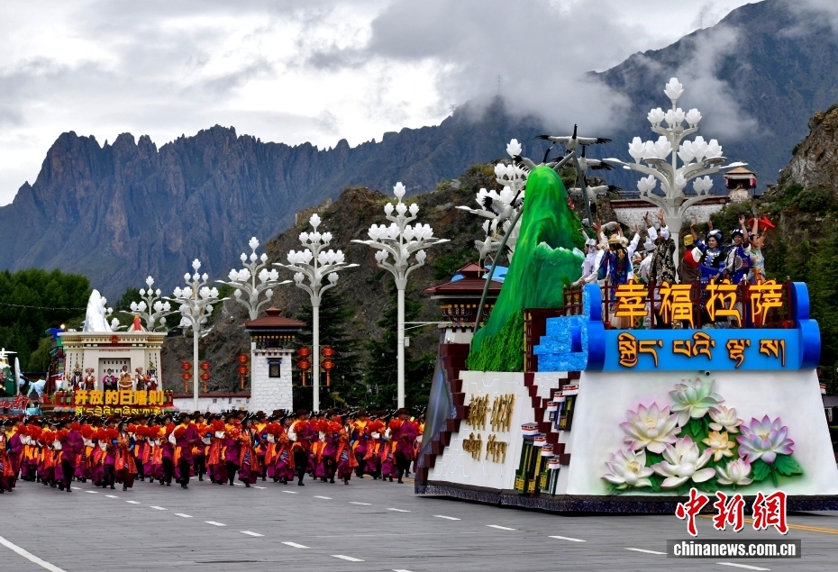 8月21日,西藏自治區(qū)成立60周年慶祝大會在拉薩布達拉宮廣場舉行。圖為慶祝大會舉行盛大的群眾游行。中新社記者 李林 攝