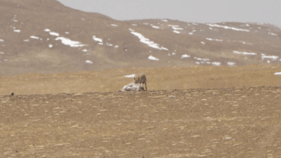 羌塘國家級自然保護(hù)區(qū)核心區(qū)中的野狼和已經(jīng)死去的母羊。