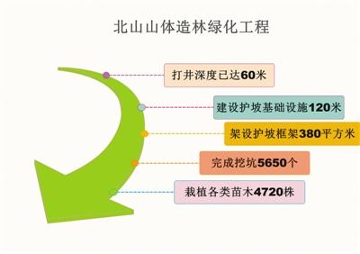 2017年,全市還完成補(bǔ)植補(bǔ)造各類苗木3.8萬余株,完成南山公園停車場(chǎng)兩側(cè)綠化,累計(jì)栽植雪松、云杉、刺槐等70000余株。完成總面積489畝的南山恰加山核心區(qū)水系工程、景觀工程、道路工程、圍欄工程等建設(shè)。