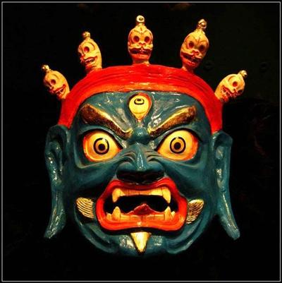面具,藏語中稱“巴”,主要用于各種民間表演活動,它與人們?nèi)粘I?、勞動、娛樂有著直接的關(guān)系,遍及全區(qū)各地。西藏面具大致分為差姆(跳神)面具、藏戲面具、懸掛面具三類。面具的制作材料有金質(zhì)、皮質(zhì)、祭品、木質(zhì)、紙質(zhì)、泥質(zhì)、貼布脫胎等。由于地域的差異、用途的不同,西藏面具呈現(xiàn)出多姿多彩、對比強烈、形式各異的特點。