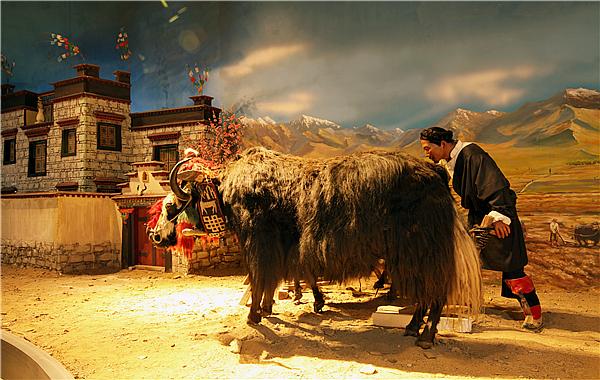 西藏牦牛博物館是北京市對口支援拉薩市的一項重要文化創(chuàng)意工程,位于拉薩河南岸柳梧新區(qū),建筑面積8088平方米,加上室外展區(qū),總面積達10000多平方米,各種藏品數(shù)千件。作為世界上第一個以牦牛為主題的博物館,西藏牦牛博物館不僅具有收藏、保存、展示、科研、教育、服務等基本功能,也是保存牦牛文化物證、傳播牦牛文化知識、探究牦牛與人類發(fā)展相互依存關系的公益性公共文化機構。圖為牦牛博物館展示的物品。圖片來源:中國西藏網(wǎng)