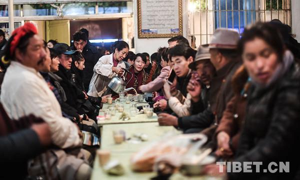 西藏茶館遍布各地集市,有酥油茶、清茶、奶茶、甜茶等多種飲茶方式。藏族人喝茶,不管是酥油茶還是清茶,都喜歡放點鹽。