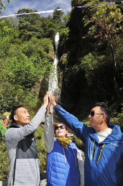 來自成都的格桑拉春和丹巴熱杰相互攙扶著往山上走。這次勒布溝之行,是女兒看到了西藏商報(bào)上的消息,特地給他們報(bào)的名,女兒說,就當(dāng)母親節(jié)送給母親的禮物。