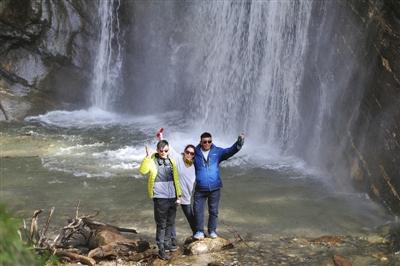 25歲的巴桑扎西趁著休假,帶著父母參團(tuán)來勒布溝旅行。13日剛好是母親節(jié),一路上他或是抱著母親拍照,或是在路不好走的時(shí)候攙扶母親,一家人其樂融融,濃濃的親情感染著大家。