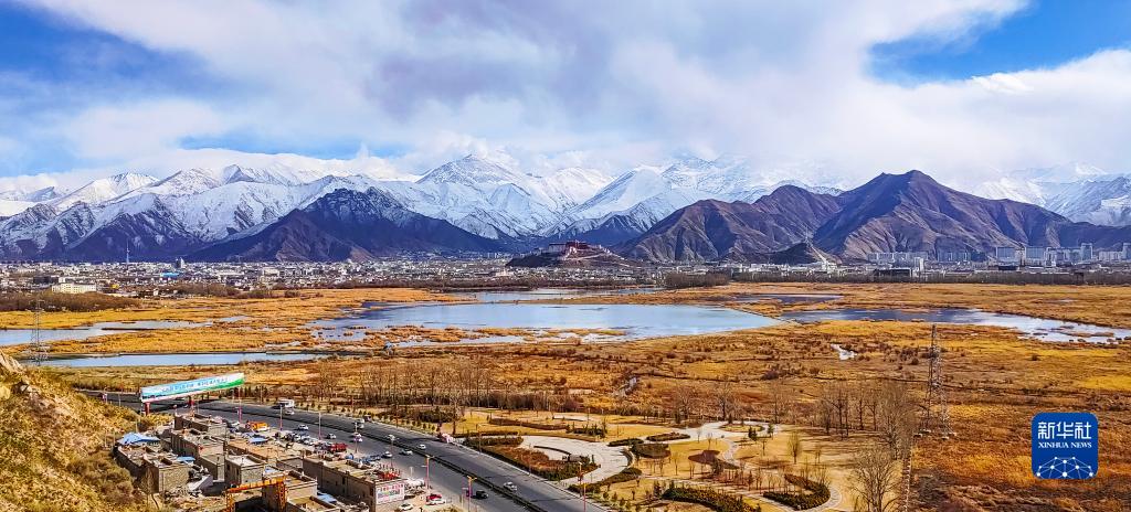 越過拉魯濕地眺望布達(dá)拉宮(2023年2月24日攝)。新華社記者沈虹冰 攝