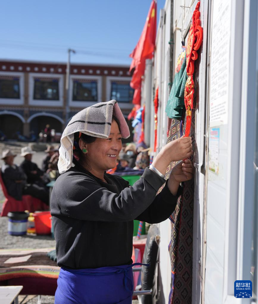 1月26日,拉孜縣吉如村安置點群眾在掛吉祥結。新華社記者 晉美多吉 攝?