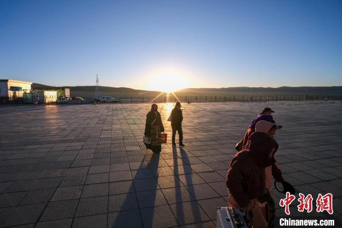 2月3日日出時分,西藏那曲安多民眾到達(dá)安多火車站,準(zhǔn)備進(jìn)站乘車。中新社記者 江飛波 攝