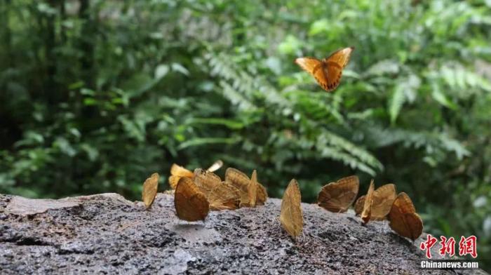 圖為蝴蝶谷林間道路上的箭環(huán)蝶。中新社記者 劉冉陽 攝