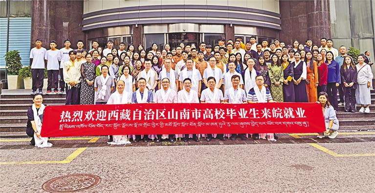 2023年9月,106名西藏籍高校畢業(yè)生組團赴安徽省就業(yè),在全區(qū)實現(xiàn)首個百人以上規(guī)模的“大組團”區(qū)外市場化就業(yè)目標(biāo)。 圖為西藏籍高校畢業(yè)生抵達(dá)安徽后合影留念。