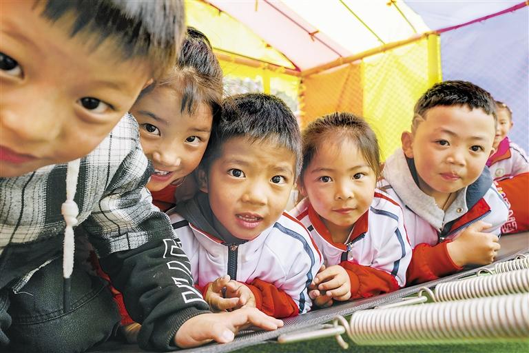 圖為昌都市邊壩縣第一小學(xué)的孩子們?cè)谡n間快樂(lè)地玩耍。本報(bào)記者 丹增群培 攝