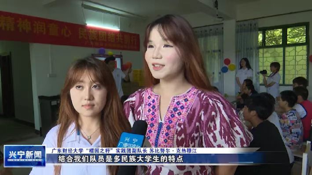 實(shí)踐團(tuán)隊(duì)員蘇比努爾 克熱穆江介紹到:在廣財(cái)大,校內(nèi)石榴樹(shù)生機(jī)勃勃,校園有“榴園”的雅稱。我們的隊(duì)員是來(lái)自廣財(cái)?shù)母髅褡宕髮W(xué)生,是“榴園”內(nèi)的“石榴籽”,因此老師為我們?nèi)∶傲駡@之籽”實(shí)踐團(tuán)。