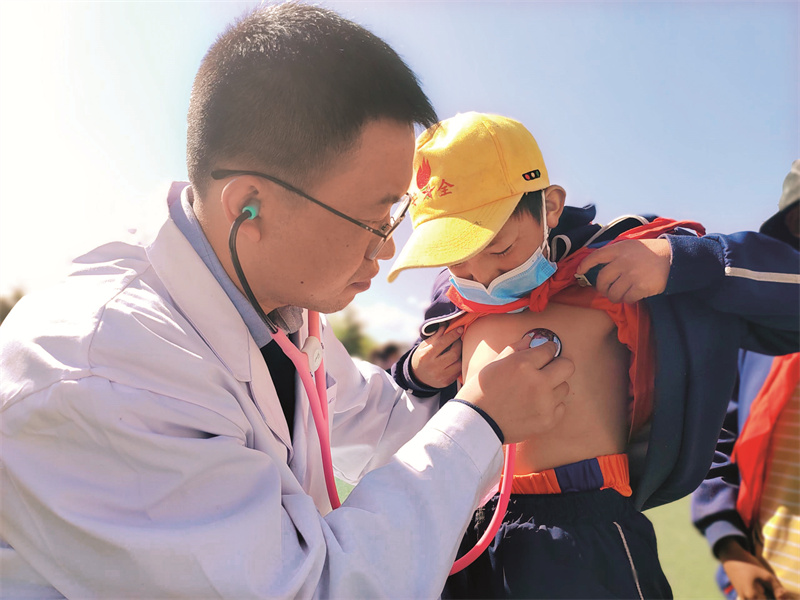 2022年4月,南京醫(yī)科大學(xué)第二附屬醫(yī)院“心佑”工程團(tuán)隊(duì)的醫(yī)生在西藏自治區(qū)拉薩市曲水縣小學(xué)為學(xué)生做先天性心臟病篩查。拉姆 攝