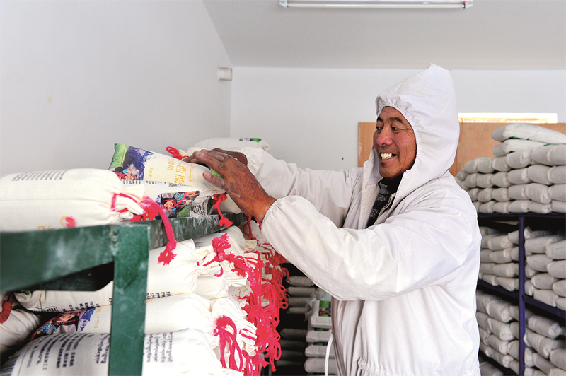 如今,在西德稞原地食品有限公司的帶動(dòng)下,久美拉姆家種的青稞根本不愁銷路。2021年,公司以每畝170斤、一斤2.5元的價(jià)格對全村青稞進(jìn)行統(tǒng)一收購,每斤收購價(jià)高于市場價(jià)0.5元。同時(shí),在村委會(huì)的統(tǒng)一安排下,久美拉姆每個(gè)月會(huì)去公司上幾天班,除了工資外,年底還能享受到公司的分紅。“公司每年輪流安排村民前來務(wù)工,累計(jì)安排村民235人次,實(shí)現(xiàn)勞務(wù)創(chuàng)收33萬元,人均增收1000元左右。”旦增頓珠介紹,在公司帶動(dòng)下,普蘭全縣推廣種植白青稞3100余畝,參與群眾達(dá)200多戶,實(shí)現(xiàn)群眾增收100萬元,脫貧戶實(shí)現(xiàn)種植收入30多萬元。近年來,隨著西德稞原地食品有限公司不斷發(fā)展壯大,西德村群眾的致富途徑日益寬廣,步入了種植增收、務(wù)工增收、分紅增收等多種增收方式鋪就的康莊大道,形成了以產(chǎn)業(yè)為支撐的長效增收機(jī)制。