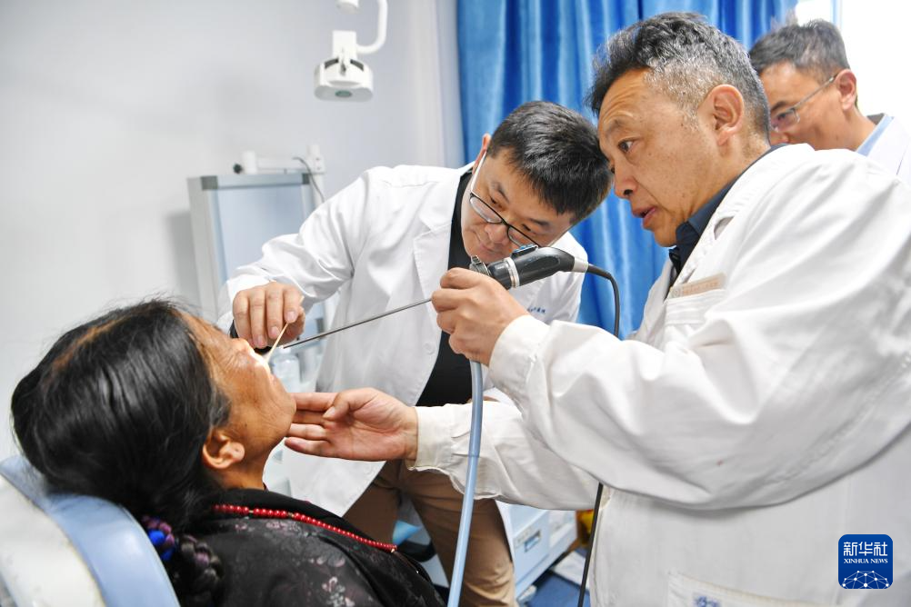 8月27日,王克明博士和西藏自治區(qū)人民醫(yī)院醫(yī)生為一名農牧民查體。新華社記者 張汝鋒 攝