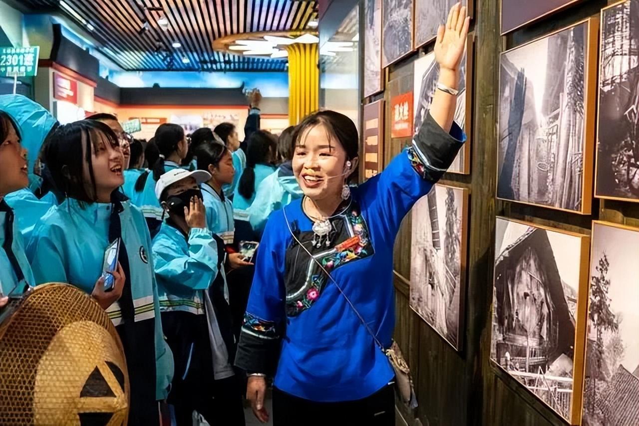 在湘西十八洞村,講解員施艷琴為游客們講解十八洞村的故事(2023年11月1日攝)。新華社記者 陳思汗 攝