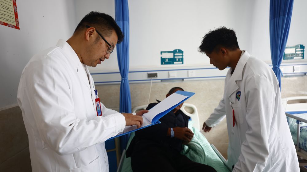 向桂林是一名援藏醫(yī)生,2023年3月,他從重慶市萬(wàn)州區(qū)來(lái)到西藏自治區(qū)昌都市察雅縣開展醫(yī)療援藏工作。在察雅的一年半里,向桂林和隊(duì)員們參加了一百多次義診和下鄉(xiāng)指導(dǎo),累計(jì)接診門診患者1000余人次、救治住院患者400余人次,開展手術(shù)35臺(tái),申報(bào)新技術(shù)10項(xiàng)。今年國(guó)慶,向桂林選擇繼續(xù)留守工作崗位。“只能在視頻通話里和家人團(tuán)聚了。但這是我們的責(zé)任更是一種榮譽(yù)?!毕蚬鹆终f。