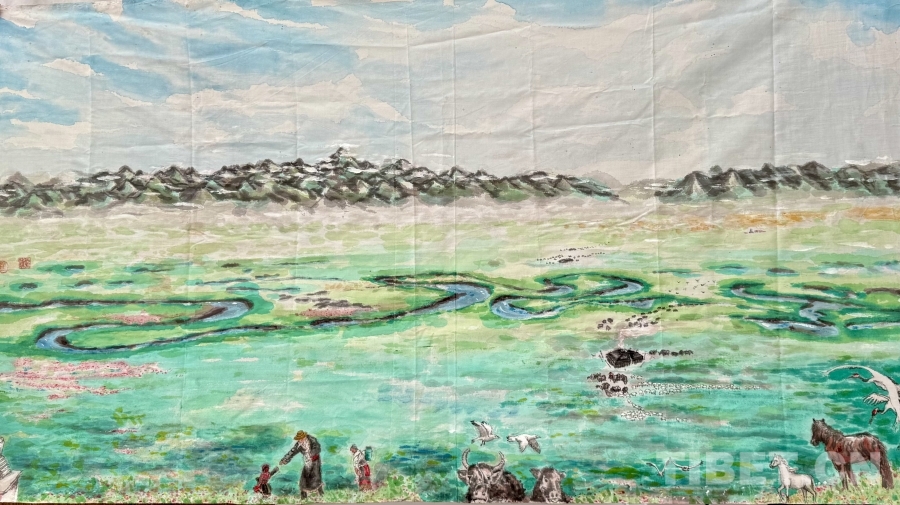 圖為王萬青手繪眷戀一生的瑪曲草原。易文文翻拍