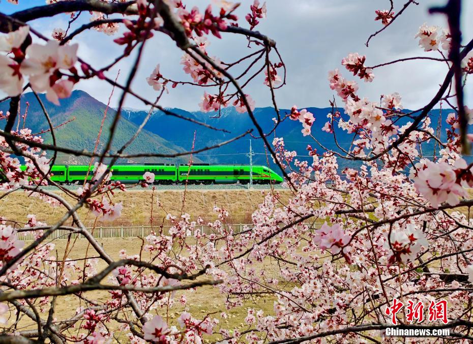 四月伊始,拉林鐵路沿線的桃花迎來(lái)了盛開(kāi)時(shí)節(jié),藍(lán)天白云下,一朵朵桃花漲紅了臉頰,與遠(yuǎn)處的雪山交相輝映,吸引了不少游客來(lái)感受高原春天的獨(dú)特魅力。當(dāng)一列列火車穿過(guò)花海,映入眼簾的皆是滿山遍野的桃花,讓人仿佛置身于秀美的江南之中。圖為拉林鐵路沿線桃花盛開(kāi)。
