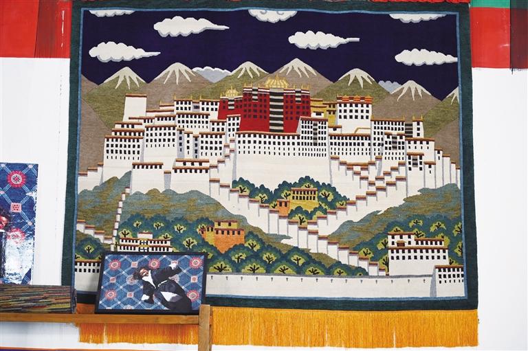 在藏毯廠陳列廳里,懸掛著一幅以布達拉宮為題材的藏毯。“眼前的這幅藏毯已經(jīng)懸掛十年,沒有任何變形?!笨ν邎圆靥簭S工作人員彭志紅說,可見手工藏毯的質(zhì)量絕佳。