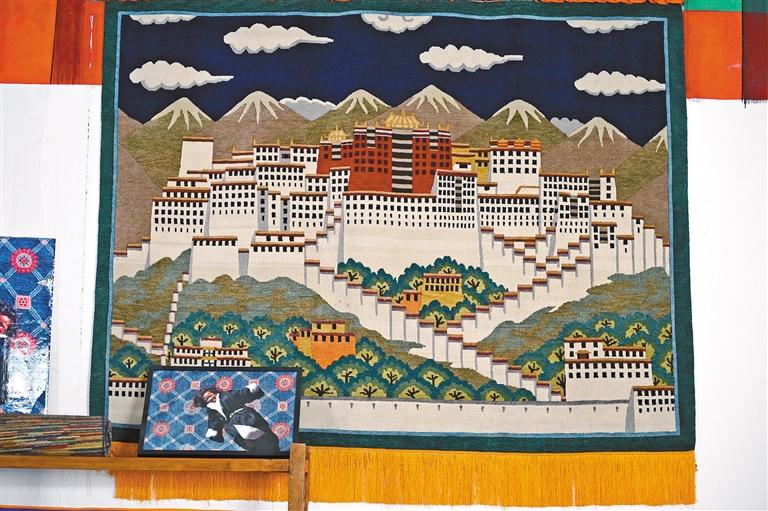 圖為喀瓦堅(jiān)藏毯廠生產(chǎn)的以“布達(dá)拉宮”為題材的藏毯。 記者 趙越 攝