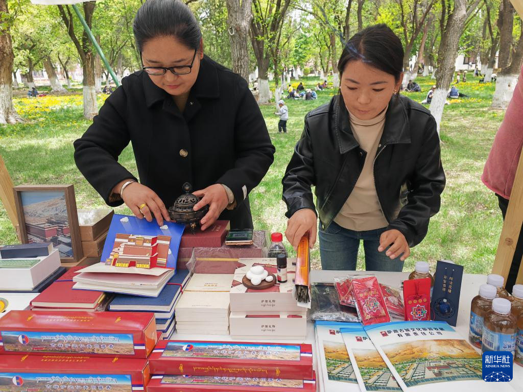 裝飾精美的藏式茶具、羊毛氈制的牧羊人玩偶、打開封面彈出立體建筑的創(chuàng)意手賬本……在林蔭道旁,文博文創(chuàng)集市集中展現(xiàn)了10多類500余種特色鮮明、別出心裁的文創(chuàng)產(chǎn)品,引得不少游客駐足選購。