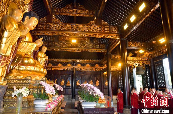 5月13日,西藏少年活佛參訪團(tuán)在大慈恩寺誦經(jīng)禮佛?!±盍?攝
