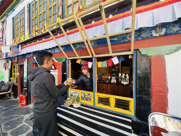 隨著對旦增特覺了解漸深,“擔(dān)當(dāng)”二字如烙印般刻在記者心間。在貢桑孜大院居民眼中,旦增特覺堪稱楷模,咖啡館的客人亦是對他贊不絕口。退休市民白珍笑容滿面地說道:“我們姐妹四個是網(wǎng)上結(jié)識這孩子的,上進(jìn)又努力,瞧著他一路打拼,心里頭滿是欣慰。這不,過幾天要去外地休養(yǎng),特意先來跟他道個別,盼著他這生意越來越紅火?!?/p>