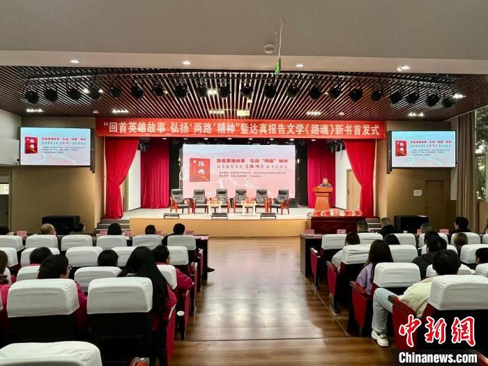 圖為報告文學(xué)《路魂》新書首發(fā)式現(xiàn)場?!√斓爻霭嫔?供圖