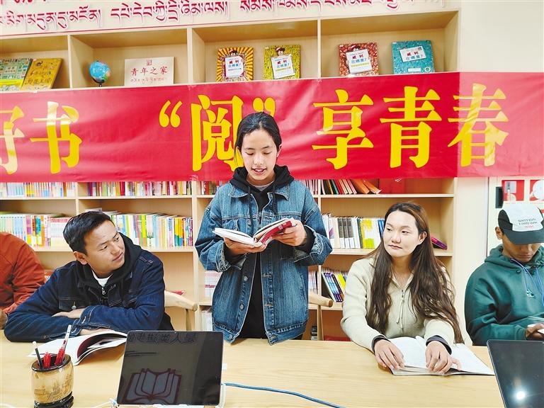 志愿者在新時(shí)代文明實(shí)踐站開展“讀書點(diǎn)亮心靈,書香潤(rùn)澤人生”讀書分享會(huì)。