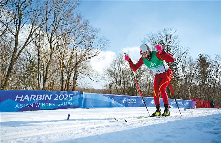 越野滑雪,是一項耐力和速度并重的運動,以滑雪板和滑雪杖為工具,滑行于山丘雪原的運動項目,自1986年首屆亞冬會即被列為正式比賽項目,其賽道通常包括上坡、下坡和平地,分別占賽道總長1/3,選手需要使用傳統(tǒng)式或自由式滑雪技巧進(jìn)行比賽。