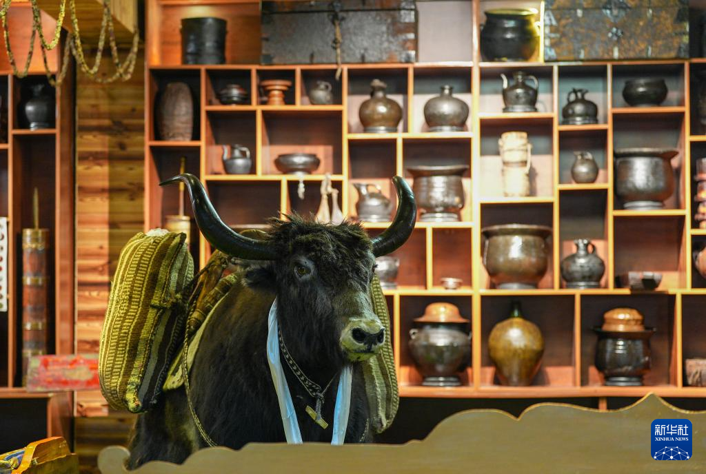 茶館主人珠珠將藏式茶館與民俗陳列方式相結(jié)合,讓顧客在品嘗美食的同時(shí),沉浸式體驗(yàn)民俗文化。茶館四周和過道上擺滿700余種3000多件西藏民俗物件,有給牛犢喂奶的牛角奶瓶、火柴盒大小的便攜酥油盒、防沙塵和雪盲的牦牛毛墨鏡等。牧民生產(chǎn)生活用具幾乎都能在這里找到,獨(dú)具風(fēng)格的茶館儼然成為一座藏北游牧文化“博物館”。