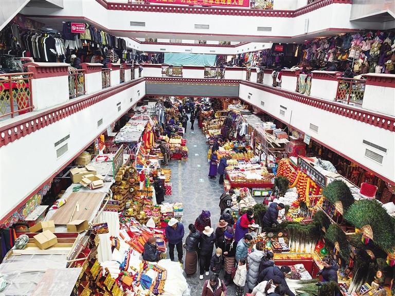 “八廓商城將年貨商家集中在一起,商戶們無需再風(fēng)吹日曬,還能免費使用攤位。”強巴次仁說,“為了保障商場內(nèi)的衛(wèi)生和安全,保潔人員定時打掃衛(wèi)生,工作人員定時巡邏,全面排查各類安全隱患,既方便了商戶,也方便了老百姓?!?/p>