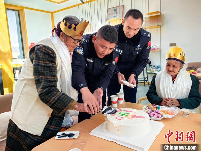 活動現(xiàn)場,帕里警民攜手精心籌備了慶祝派對。邊防民警、社區(qū)兩委班子成員以及駐村工作隊共同為老人們獻(xiàn)上了飽含祝福的歌曲,定制了精美的蛋糕,并為老人穿上象征高壽的藏式服裝。在輕松愉快的氛圍中,大家圍坐在一起,與老人們親切交談,聆聽他們的生活故事,了解他們的實際需求。