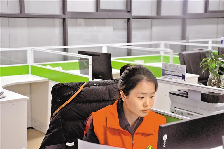旦增德吉在拉薩市三級政務服務大廳一樓辦公點辦公。記者 王超 攝