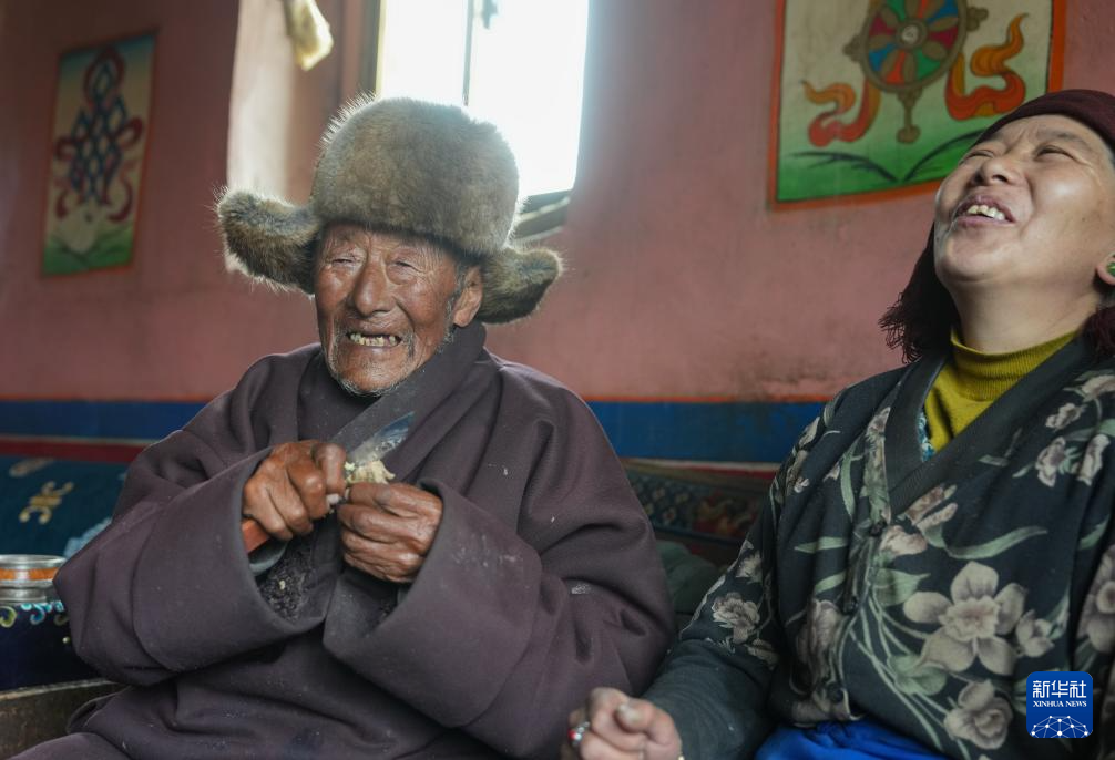 索扎老人和家人聊天(3月20日攝)。新華社記者 晉美多吉 攝