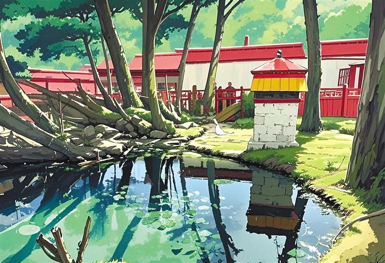 三個(gè)放學(xué)歸來(lái)的孩子蹲在石板邊,用泉水沖洗沾滿泥土的手,水珠順著手指滴落時(shí),忽然有斑頭雁群掠過泉面上空。他們屏息凝望的瞬間,宮崎駿動(dòng)畫中常見的“萬(wàn)物有”氣息,正從濕地里蒸騰的水霧中悄然漫出。