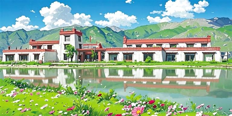 “我就是想以動(dòng)畫風(fēng)格給大家展示不一樣的堆龍?!钡┰隼氛f(shuō)。只見她又將照片導(dǎo)入AI圖片生成軟件內(nèi),AI自動(dòng)識(shí)別圖像元素——經(jīng)幡的布料特性、水流的物理參數(shù)、建筑材質(zhì)的反光數(shù)據(jù)。輕點(diǎn)“生成”按鈕,1分23秒后,一張動(dòng)畫風(fēng)格的Shadada CoffeeX新型公共文化空間的圖片便呈現(xiàn)在眼前。重點(diǎn)不是技術(shù),是審美把關(guān),旦增拉姆指著屏幕上的失敗案例:“AI把青稞田處理成糖果色卡通,把圖書館渲染成賽博朋克風(fēng)格。我每天要調(diào)整無(wú)數(shù)次參數(shù),就像教AI理解什么是藏地美學(xué)?!彼米瞵F(xiàn)代化的數(shù)字工具,“描繪”著堆龍德慶區(qū)新的光影詩(shī)篇。