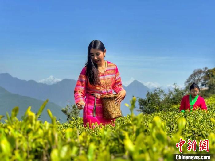 圖為西藏墨脫縣門巴族民眾在采摘茶葉?!∧摽h人力資源和社會保障局供圖