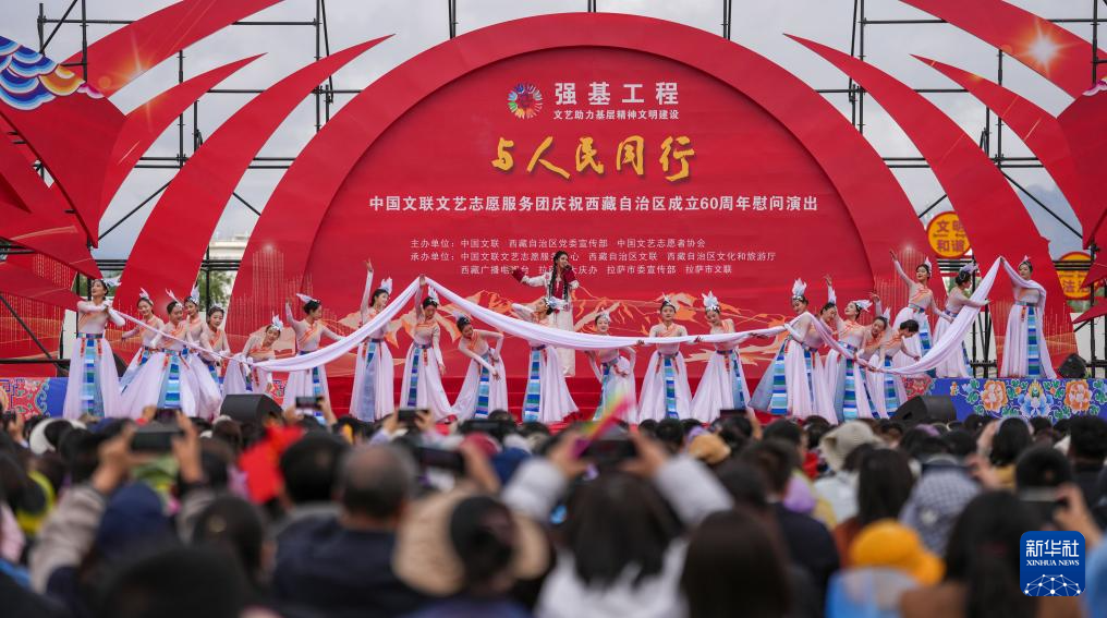 5月25日,由中國文聯(lián)、西藏自治區(qū)黨委宣傳部、中國文藝志愿者協(xié)會主辦的“與人民同行”中國文聯(lián)文藝志愿服務團慶祝西藏自治區(qū)成立60周年慰問演出在位于拉薩的西藏會展中心廣場舉行。