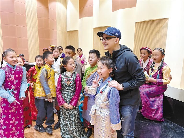 文藝志愿者與西藏珠峰少年合唱團(tuán)開(kāi)展暖心結(jié)對(duì)幫扶。 (圖片由自治區(qū)黨委宣傳部提供)