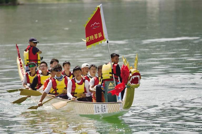 隨后,自治區(qū)體育局黨組副書(shū)記、局長(zhǎng)尼瑪次仁宣布活動(dòng)正式開(kāi)始,隨著比賽開(kāi)始,現(xiàn)場(chǎng)瞬間沸騰,鼓點(diǎn)聲、吶喊聲、槳葉擊水聲交織成激昂樂(lè)章,水面上的龍舟隊(duì)伍如離弦之箭破浪疾馳。選手們身著統(tǒng)一隊(duì)服,在舵手鏗鏘有力的指揮下,整齊劃一地?fù)]槳破水,動(dòng)作剛勁有力,節(jié)奏緊湊有序。