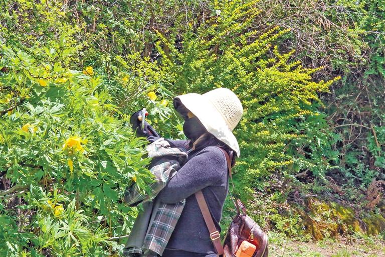 游客在用手機拍攝米林黃牡丹。記者 謝筱純 劉楓 攝