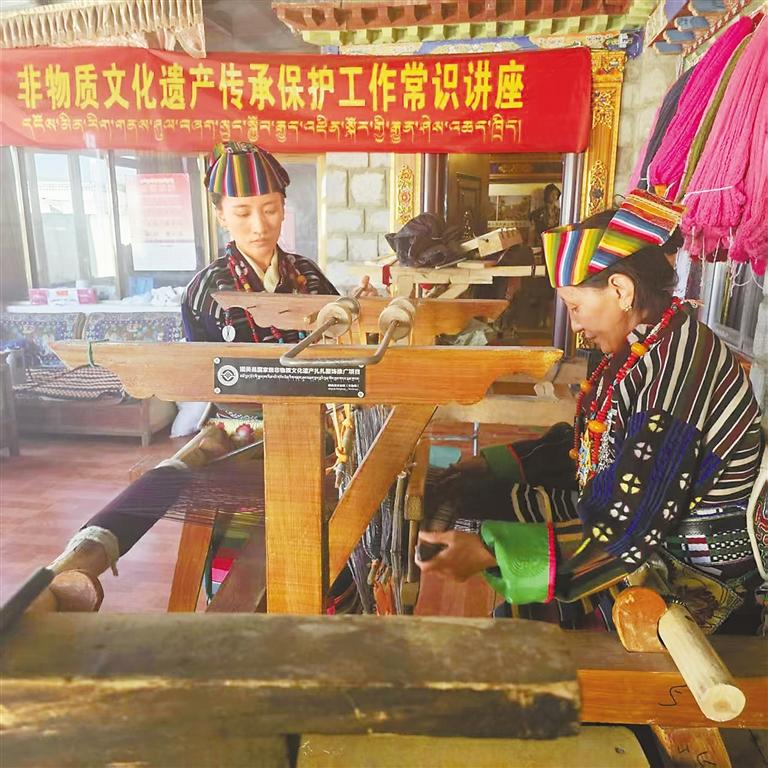 扎扎服飾制作傳承人紡織氆氌。