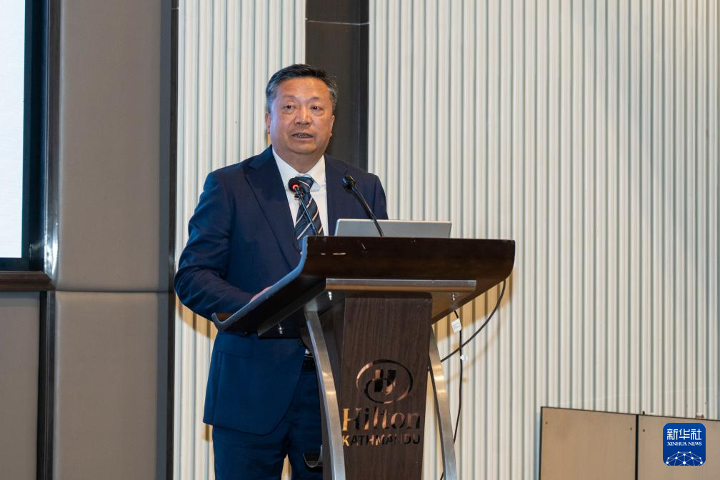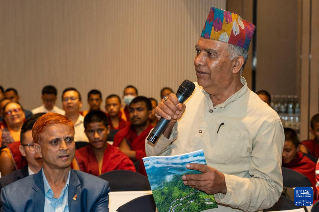 6月24日,一名中國藏學家在尼泊爾加德滿都舉辦的交流會上發(fā)言。新華社發(fā)(哈里·馬哈爾詹攝)