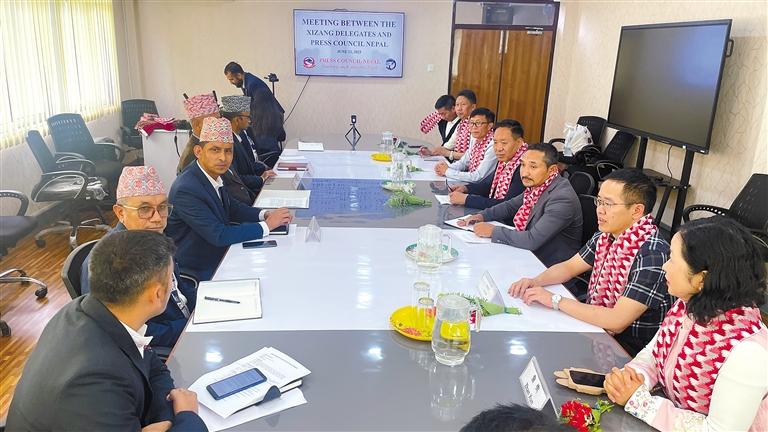 中國西藏代表團(tuán)拜訪尼泊爾新聞委員會。