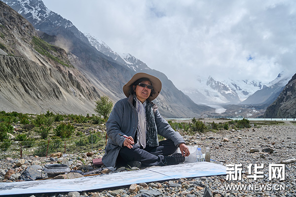 6月19日,“文化西藏 天上畫卷”高原高峰藝術(shù)家西藏行寫生活動(dòng)走進(jìn)祥格拉冰川。西藏中國(guó)高原畫派研究院院長(zhǎng)、西藏自治區(qū)美術(shù)家協(xié)會(huì)名譽(yù)主席唐天源現(xiàn)場(chǎng)寫生。