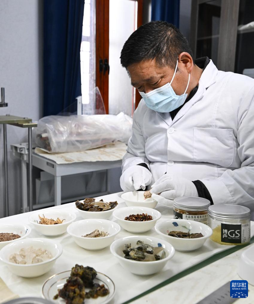 布達拉宮貝葉經實驗性修復小組實驗室工作人員對用于貝葉修復的粘合劑原料進行加工(5月25日攝)。新華社記者 李賀 攝